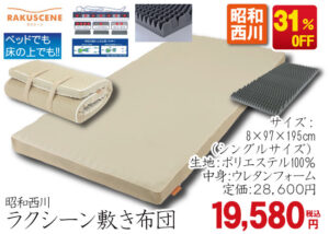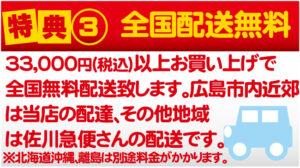 - 特典③:33,000円以上のお布団お買い上げで全国無料配送(北海道沖縄離島は別料金)