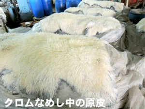 まずは、入荷した原皮です。ここのムートンは原料にもこだわりが。
